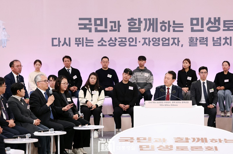 À±¼®¿ ´ëÅë·ÉÀÌ 2ÀÏ Ãæ³² °øÁֽà ¾ÆÆ®¼¾ÅÍ °í¸¶¿¡¼ ¡®´Ù½Ã ¶Ù´Â ¼Ò»ó°øÀΡ¤ÀÚ¿µ¾÷ÀÚ, Ȱ·Â ³ÑÄ¡´Â °ñ¸ñ»ó±Ç¡¯À» ÁÖÁ¦·Î ¿¸° ±¹¹Î°ú ÇÔ²²ÇÏ´Â ¹Î»ýÅä·Ðȸ¸¦ ÁÖÀçÇß´Ù. (»çÁø=´ëÅë·É½Ç ȨÆäÀÌÁö)