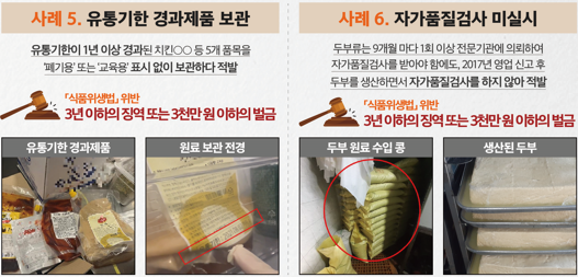¡®½ÄǰÀ§»ý¹ý¡¯¿¡ µû¶ó ½ÄǰÀÇ º¸Á¸±âÁØÀ» À§¹ÝÇϰųª ¿µ¾÷Àå ¸éÀû º¯°æ ½Å°í¸¦ ÇÏÁö ¾Ê´Â °æ¿ì °¢°¢ 5³â ÀÌÇÏÀÇ Â¡¿ª ¶Ç´Â 5õ¸¸ ¿ø ÀÌÇÏÀÇ ¹ú±ÝÀÌ ºÎ°úµÇ°í, À¯Åë±âÇÑ °æ°ú Á¦Ç° º¸°ü ¹× ¿µ¾÷ °ü°è ¼·ù ¹ÌÀÛ¼ºÀÇ °æ¿ì °¢°¢ 3³â ÀÌÇÏÀÇ Â¡¿ª ¶Ç´Â 3õ¸¸ ¿ø ÀÌÇÏÀÇ ¹ú±ÝÀÌ ºÎ°úµÈ´Ù.