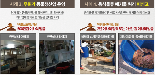 ÀÜÀÎÇÑ ¹æ¹ýÀ¸·Î °³¸¦ µµ»ìÇϰųª ¹«Çã°¡¾÷ü¿¡¼ ¹Ý·Áµ¿¹°À» ¹ø½Ä½ÃÄÑ Çã°¡¾÷ü ¸íÀÇ·Î °æ¸ÅÀå¿¡ ÆÇ¸ÅÇÏ´Â µî µ¿¹° °ü·Ã ºÒ¹ýÇàÀ§¸¦ ÇÑ ¾÷ÀÚ µîÀÌ °æ±âµµ Ưº°»ç¹ý°æÂû´Ü¿¡ Àû¹ßµÆ´Ù.