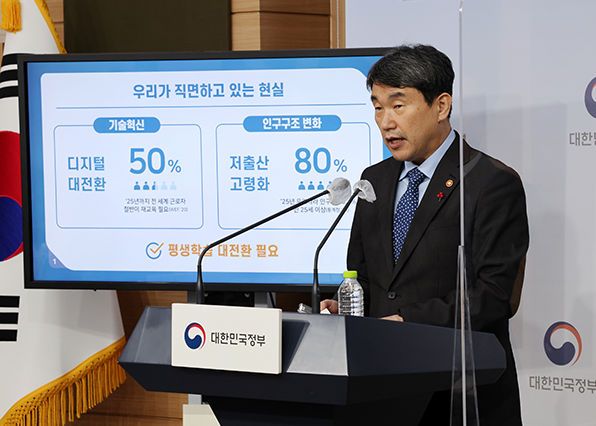 ÀÌÁÖÈ£ »çȸºÎÃѸ® °â ±³À°ºÎ Àå°üÀÌ 28ÀÏ Á¤ºÎ¼¿ïû»ç º°°ü¿¡¼ ¡®Æò»ýÇнÀ ÁøÈï¹æ¾È(2023~2027³â)¡¯À» ¹ßÇ¥Çϰí ÀÖ´Ù. (»çÁø=±³À°ºÎ)