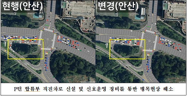 ÁÖ¿ä °³¼± »ç·Ê¸¦ »ìÆìº¸¸é ¸ÕÀú ¾È»ê ´Ü¿ø¹Ì¼ú°ü»ç°Å¸® Åð±Ù½Ã°£´ë ¼¿ï¹æ¸é Á÷Áø °¡¼ÓÂ÷·Î Á¤ºñ ¹æ¾ÈÀÌ ÀÖ´Ù. ÇØ´ç ±³Â÷·Î´Â ºÏ¡æµ¿(¼¿ï) ¹æ¸é ÁÂȸÀüÀ» ±ÝÁöÇÏ´Â ´ë½Å PÅÏÀ» Çã¿ëÇØ º»¼± ÇÕ·ù±¸°£¿¡ º´¸ñÇö»óÀÌ ¾ß±âµÇ´Â ¹®Á¦Á¡ÀÌ ÀÖ¾ú´Ù.