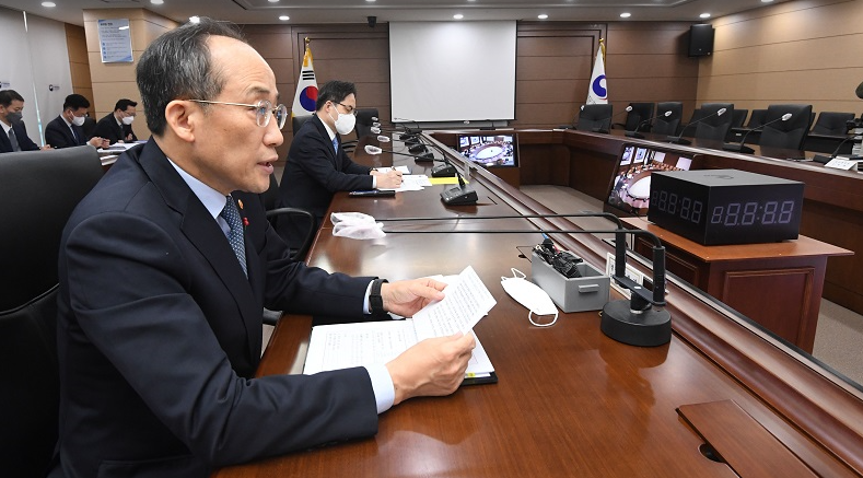Ãß°æÈ£ ºÎÃѸ® °â ±âȹÀçÁ¤ºÎ Àå°üÀÌ 4ÀÏ Á¤ºÎ¼¼Á¾Ã»»ç¿¡¼ ¿¸° ºñ»ó°æÁ¦Àå°üȸÀǸ¦ ÁÖÀç, ¸ðµÎ¹ß¾ðÀ» Çϰí ÀÖ´Ù. (»çÁø=±âȹÀçÁ¤ºÎ)
