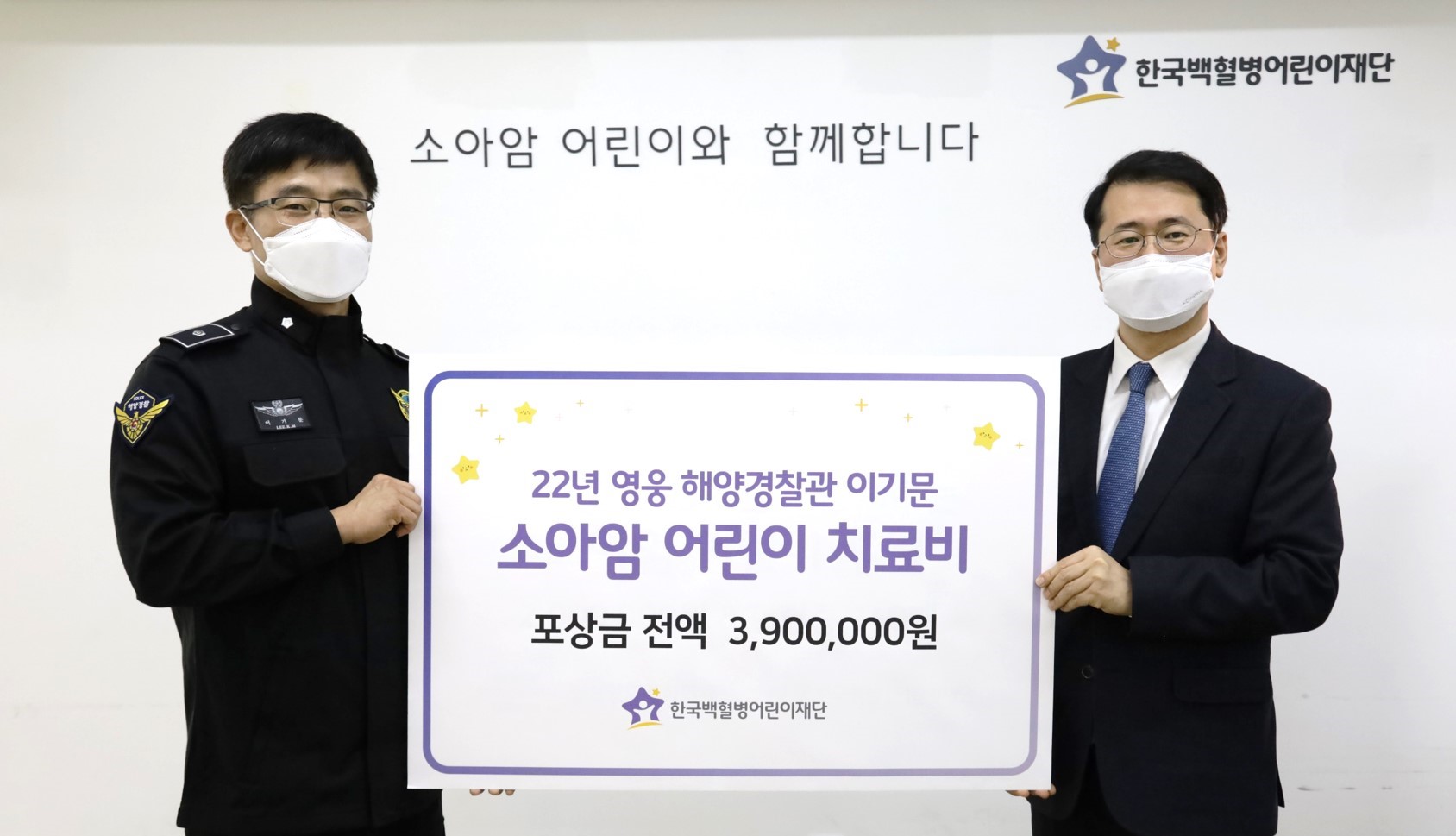 ÇØ¾ç°æÂûû(ûÀå ±èÁ¾¿í)Àº ¡¯22³â ¿µ¿õ ÇØ¾ç°æÂû°üÀ¸·Î ¼±¹ßµÈ Ç×°ø°ú À̱⹮ °æÀ§°¡ Áö³ 10ÀÏ ¼Ò¾Æ¾Ï¡¤¹éÇ÷º´ ¾î¸°ÀÌ Ä¡·á¿¡ Æ÷»ó±Ý Àü¾×À» ±âºÎÇÏ´Â ¼±ÇàÀ» ½ÇõÇß´Ù°í ¹àÇû´Ù.
