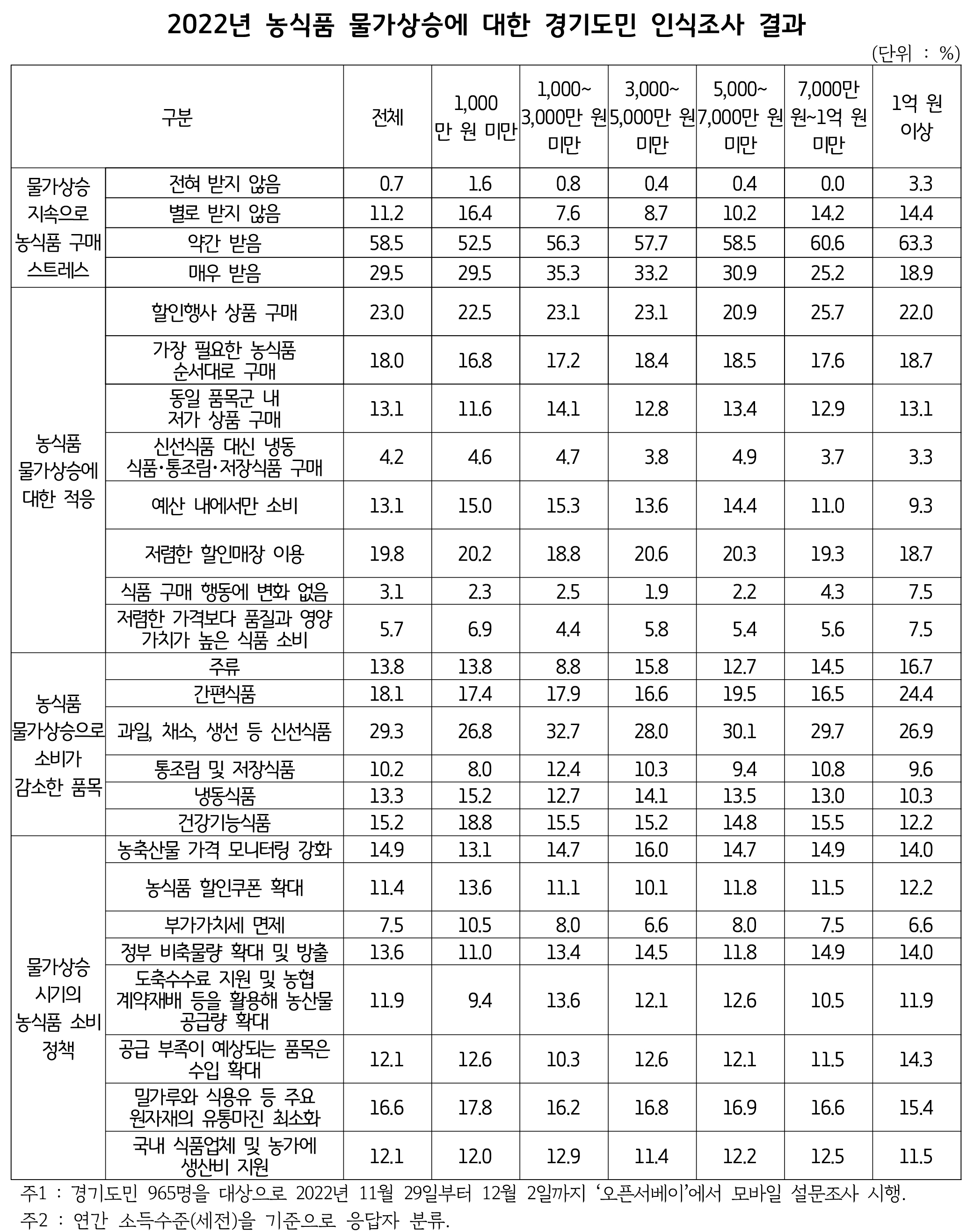 °æ±â¿¬±¸¿øÀº 2022³â 11¿ù 29ÀÏ~12¿ù 2ÀÏ °æ±âµµ¹Î 965¸íÀ» ´ë»óÀ¸·Î ³ó½Äǰ ¹°°¡»ó½Â¿¡ ´ëÇÑ ÀνÄÁ¶»ç ³»¿ëÀ» ´ãÀº ¡®³ó½Äǰ ¹°°¡»ó½ÂÀ¸·Î ÀÎÇÑ Àå¹Ù±¸´Ï °æÁ¦ÀÇ µô·¹¸¶¡¯ º¸°í¼¸¦ ¹ß°£Çß´Ù°í 19ÀÏ ¹àÇû´Ù.
