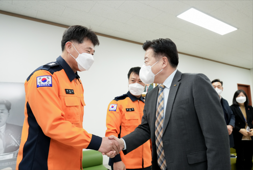 ¿À¿µÈÆ Á¦ÁÖÆ¯º°ÀÚÄ¡µµÁö»ç°¡ ¼³ ¿¬ÈÞµ¿¾È µµ¹Î°ú ±Í¼º°´, °ü±¤°´ÀÌ Á¦ÁÖ¿¡¼ ´Ü¶õÇÏ°í ¾ÈÀüÇÏ°Ô ¸íÀýÀ» º¸³¾ ¼ö ÀÖµµ·Ï öÀúÇÏ°Ô ´ëºñÇÒ °ÍÀ» °Á¶Çϰí, ºñ»ó±Ù¹«¿¡ Èû¾²´Â Á÷¿øµéÀ» °Ý·ÁÇß´Ù.