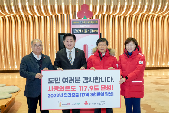 ¿À¿µÈÆ Áö»ç´Â ¡°¾î·Á¿î ÀÌ¿ô°ú Á¦ÁÖ»çȸ°øµ¿Ã¼¸¦ À§ÇÑ Á¦ÁÖµµ¹ÎµéÀÇ »ç¶ûÀÇ ¼Õ±æÀÌ ¸ð¿© »ç¶ûÀÇ ¿ÂµµÅ¾ 117.9¡É¸¦ ´Þ¼ºÇß´Ù¡±¸ç ¡°À̹ø¿¡ ¸ðÀÎ ¼º±ÝÀÌ µû¶æÇÑ ¼Õ±æÀ» ±â´Ù¸®´Â ¾î·Á¿î ÀÌ¿ô¿¡°Ô Á¶±ÝÀ̳ª¸¶ À§·Î°¡ µÇ±æ Èñ¸ÁÇÑ´Ù¡±°í ¸»Çß´Ù.