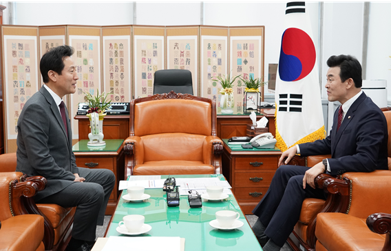 ¿À ½ÃÀåÀº 8ÀÏ(¼ö) ±¹È¸¸¦ ã¾Æ, À±¿µ¼® ±âȹÀçÁ¤À§¿øÈ¸ À§¿øÀå(±¹¹ÎÀÇÈû)°ú ±âȹÀçÁ¤À§¿øÈ¸ ¿©¾ß °£»ç¸¦ ¸Ã°í ÀÖ´Â ·ù¼º°É(±¹¹ÎÀÇÈû)¡¤½Åµ¿±Ù(´õºÒ¾î¹ÎÁÖ´ç) ÀÇ¿øÀ» ¿¬ÀÌ¾î ¸é´ãÇß´Ù.