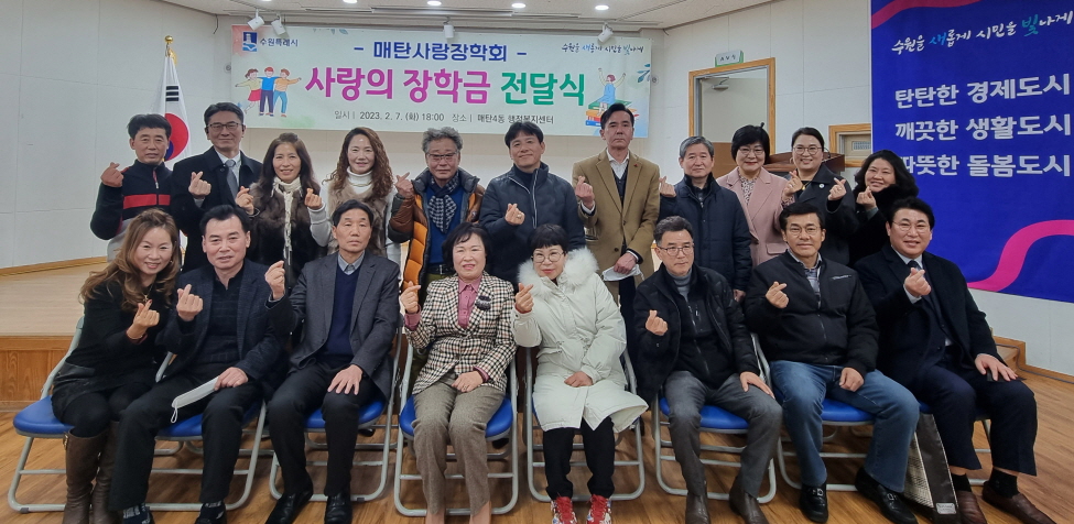 7ÀÏ ¸Åź4µ¿ÇàÁ¤º¹Áö¼¾ÅÍ »êµå·¡¹Ì°¶·¯¸®¿¡¼ ¿¸° ÀåÇÐ±Ý Àü´Þ½Ä¿¡¼ ±Ç¿µ¼ø ¸Åź»ç¶ûÀåÇÐȸ ȸÀåÀº ¸ð¹ü û¼Ò³â 16¸í¿¡ ÀåÇÐÁõ¼¸¦ ¼ö¿©Çϰí, ½ÒÀ» Àü´ÞÇß´Ù. û¼Ò³â 1¸í¿¡°Ô ÀåÇÐ±Ý 50¸¸ ¿ø°ú ½Ò 10§¸¸¦ Áö¿øÇÑ´Ù.