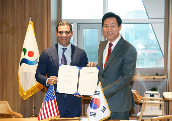 À̹ø ¿ìÈ£Çù·Âµµ½Ã ¾çÇØ°¢¼(MOU)ü°áÀº ¿ìÈ£µµ½ÃÇùÁ¤ ü°áÀ» À§ÇØ ÇÁ¶õ½Ã½º ¼ö¾Æ·¹Áî(Francis Suarez) ¸¶ÀÌ¾Ö¹Ì ½ÃÀåÀÌ ¼¿ïÀ» ¹æ¹®Çϸç ÀÌ·ç¾îÁö°Ô µÇ¾ú´Ù.