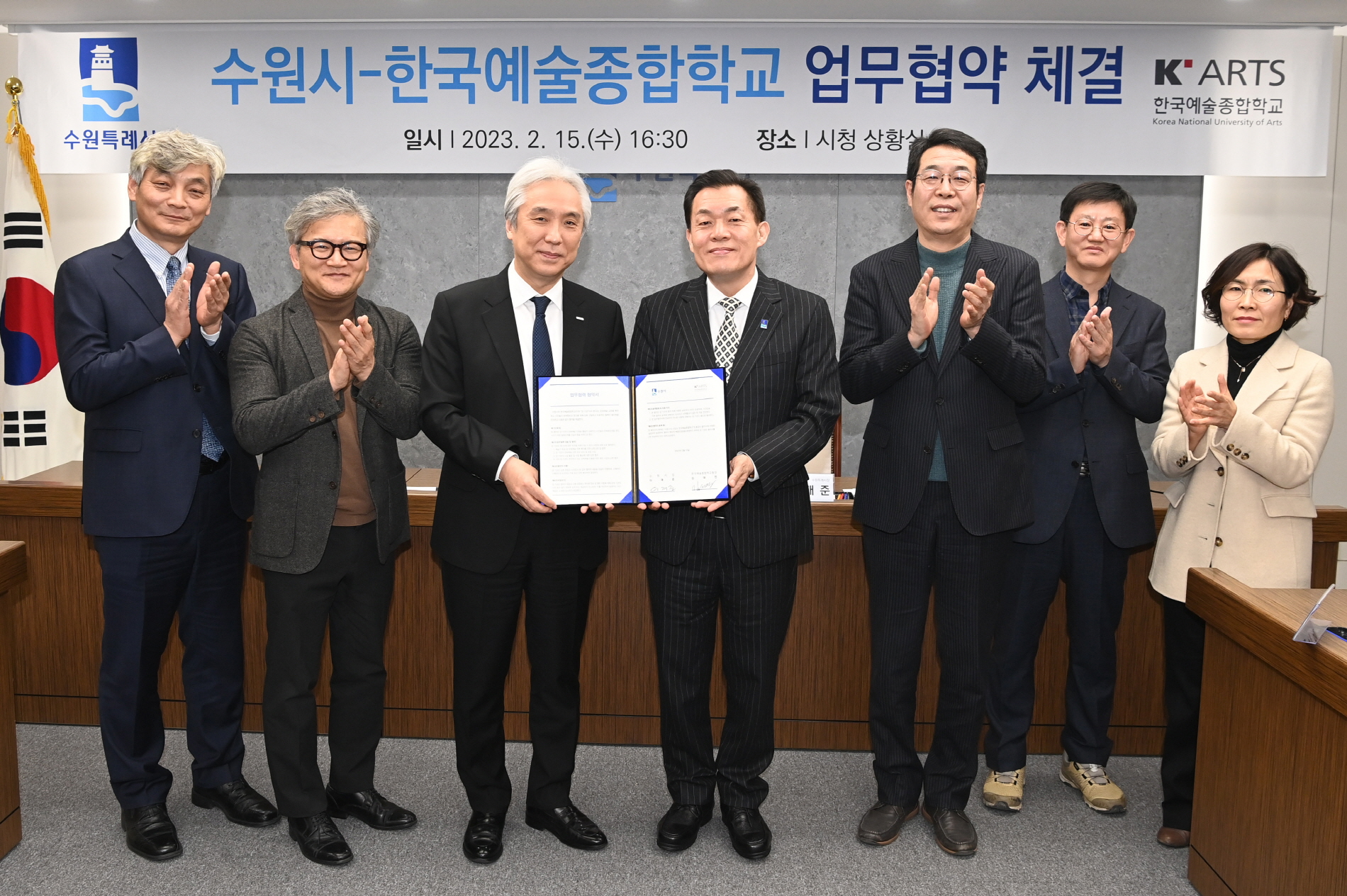 ¼ö¿ø½Ã¿Í Çѱ¹¿¹¼úÁ¾ÇÕÇб³´Â 15ÀÏ ¼ö¿ø½Ãû »óȲ½Ç¿¡¼ ¾÷¹«Çù¾àÀ» ü°áÇϰí, ¹®È¿¹¼ú ºÐ¾ß ±³·ù¸¦ Ȱ¼ºÈÇϱâ·Î Çß´Ù.