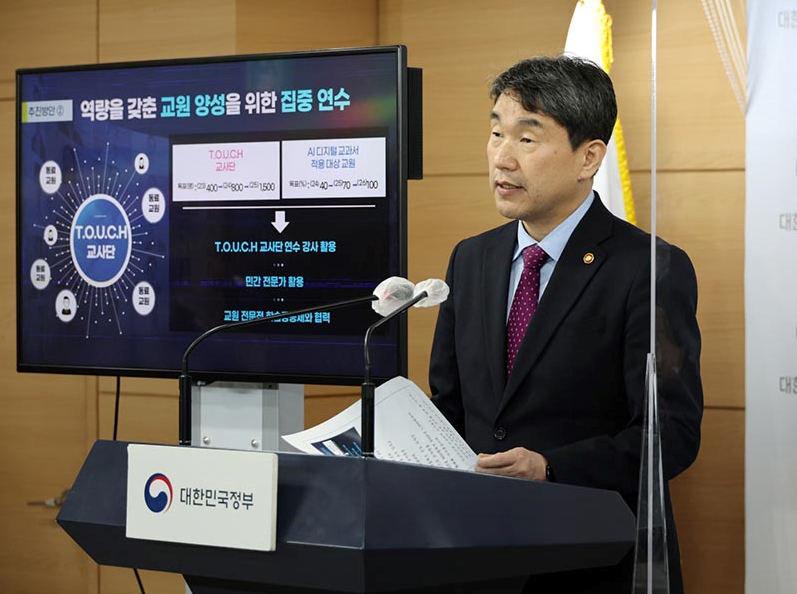 ÀÌÁÖÈ£ »çȸºÎÃѸ® °â ±³À°ºÎ Àå°üÀÌ 23ÀÏ Á¤ºÎ¼¿ïû»ç¿¡¼ ¡®µðÁöÅÐ ±â¹Ý ±³À°Çõ½Å ¹æ¾È¡¯À» ¹ßÇ¥Çϰí ÀÖ´Ù. (»çÁø=±³À°ºÎ)