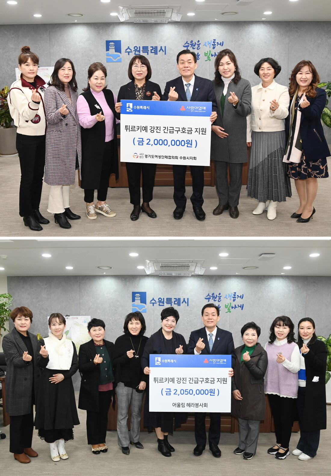 °æ±âµµ¿©¼º´ÜüÇùÀÇȸ ¼ö¿ø½ÃÁöȸ, ¾î¿ï¸² Çì¶óºÀ»çȸ°¡ ¡°Æ¢¸£Å°¿¹¡¤½Ã¸®¾Æ ÁöÁøÇÇÇØ º¹±¸ Áö¿ø¿¡ »ç¿ëÇØ ´Þ¶ó¡±¸ç ¼ö¿ø½Ã¿¡ °¢°¢ 200¸¸ ¿ø, 205¸¸ ¿øÀ» ±âŹÇß´Ù.