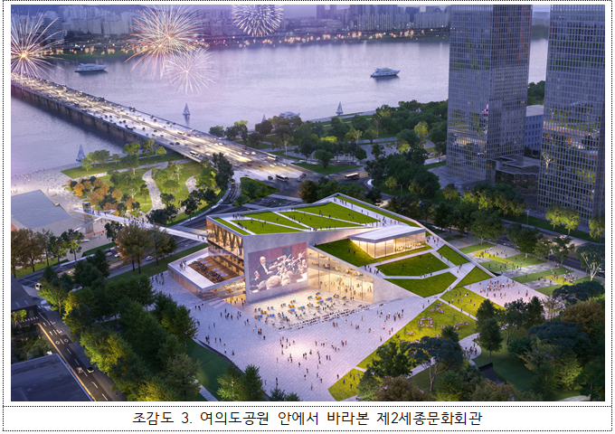 ¿©Àǵµ¡¤¿µµîÆ÷°¡ À§Ä¡ÇÑ ¼³²±Ç Áö¿ªÀº °ø¿¬Àå ÀÎÇÁ¶ó°¡ ºÎÁ·ÇÑ ½ÇÁ¤À¸·Î ¼³²±ÇÀÇ »õ·Î¿î ¹®È Áß½ÉÁö Á¶¼ºÀÌ ÇÊ¿äÇϰí, 3´ë µµ½É Áß ¼¿ïµµ½É ¡®¼¼Á¾¹®Èȸ°ü¡¯ °³²µµ½É ¡®¿¹¼úÀÇ Àü´ç¡¯ÀÌ ÀÖÀ¸³ª, ¿©Àǵµ¡¤¿µµîÆ÷µµ½É¿¡¸¸ ´ëÇ¥ÀûÀÎ °ø¿¬ÀåÀÌ ¾ø¾î ¡®¼³²±Ç Á¦2¼¼Á¾¹®Èȸ°ü¡¯ °Ç¸³ÀÌ ÇÊ¿äÇÏ´Ù.