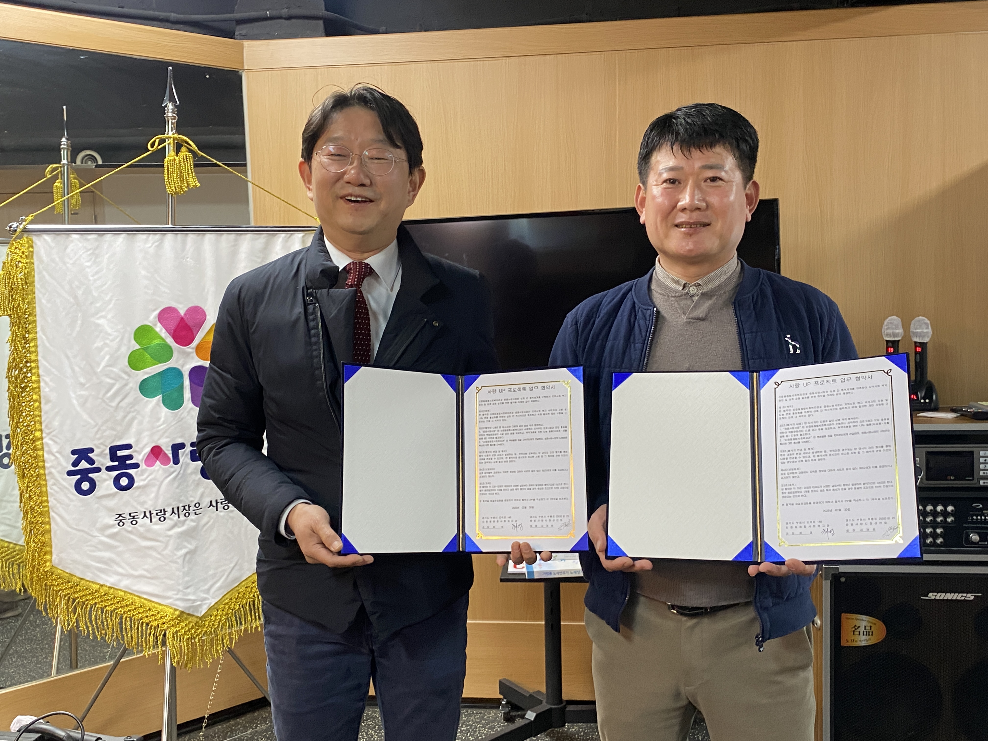 ºÎõ ½ÅÁßµ¿Á¾ÇÕ»çȸº¹Áö°ü(°üÀå ÃÖ¿µ)Àº Áßµ¿»ç¶û½ÃÀå »óÀÎȸ(ȸÀå ±è°æ¿Ï)¿Í Áö³ 30ÀÏ »ç¶ûÀÌ ³ÑÄ¡´Â ¸¶À» ¸¸µé±â¸¦ À§ÇÑ ¡®»ç¶ûUP ÇÁ·ÎÁ§Æ®¡¯ ¾÷¹« Çù¾à½ÄÀ» ÁøÇàÇß´Ù.