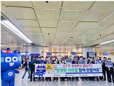Ȱµ¿Àº ÁöÇÏöÀ» ÀÌ¿ëÇÏ´Â ½Ã¹Îµé¿¡°Ô ÁöÇÏö ¹üÁËÀÇ À§Ç輺À» ³Î¸® ¾Ë¸®°í, ¿¹¹æÈ¿°ú¸¦ ³ô¿© ¾È½ÉÇÒ ¼ö ÀÖ´Â ÁöÇÏö ÀÌ¿ë ȯ°æÀ» Á¶¼ºÇϰíÀÚ ÁøÇàµÆ´Ù. Âü¿©ÀÚµéÀº ¿Õ½Ê¸®¿ª ¿ª»ç ³» ȯ½ÂÅë·Î¿¡¼ À̿밴µé¿¡°Ô ¡®¼ºÃßÇà・ºÒ¹ýÃÔ¿µ OUT! ¾ÈÀüÇÑ ÁöÇÏö ÇÔ²² ¸¸µé¾î¿ä¡¯¶ó´Â ¹®±¸°¡ ÀûÈù ¹üÁË ¿¹¹æ È«º¸¹°(¹°Æ¼½´ ¹× ÈÞ´ëÀüÈ ºÎÂø ±×¸³)À» ³ª´²ÁÖ¾ú°í, ÀÌÈÄ ¿ª»ç ³» ÈÀå½ÇÀ» ÇÕµ¿À¸·Î Á¡°ËÇØ ºÒ¹ýÃÔ¿µ ÀåºñÀÇ Á¸Àç À¯¹«¸¦ È®ÀÎÇÏ´Â µîÀÇ È°µ¿À» ÆîÄ¡¸ç ¹üÁË Àú°¨À» À§ÇØ ÃÖ¼±À» ´ÙÇϰڴٴ ¶æÀ» ¹àÇû´Ù.