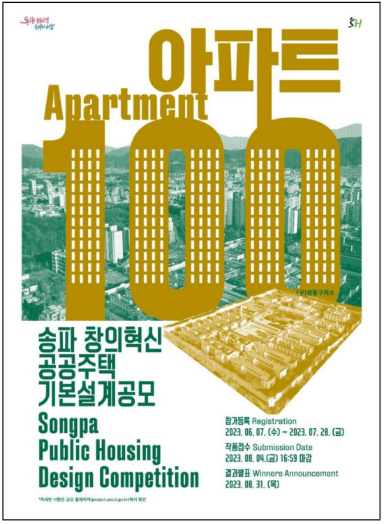 ¡®¼ÛÆÄ âÀÇÇõ½Å °ø°øÁÖÅà °Ç¼³»ç¾÷¡¯ ¼³°è°ø¸ð¿¡ Âü°¡¸¦ Èñ¸ÁÇÏ´Â ¾÷ü´Â 2023. 6. 7(¼ö) ~ 2023. 7. 28(±Ý)±îÁö ¼¿ï½Ã ¼³°è°ø¸ð ÆäÀÌÁö (https://project.seoul.go.kr) ¸¦ ÅëÇØ Âü°¡ µî·ÏÀ» ÇÒ ¼ö ÀÖ´Ù.