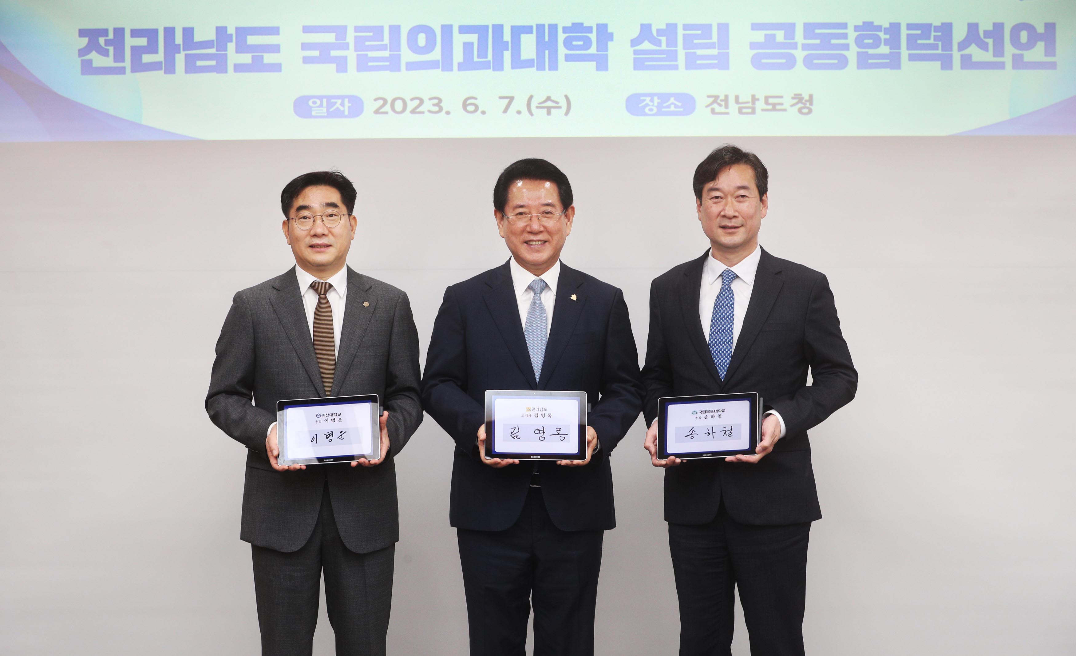 Àü¶ó³²µµ´Â 7ÀÏ µµÃ» ±Íºó½Ç¿¡¼ ±¹¸³ ¸ñÆ÷´ë¡¤¼øÃµ´ë¿Í ÇÔ²² µµ¹Î ÀÇ·á¿©°Ç °³¼±°ú Áö¿ª¼Ò¸ê À§±â ±Øº¹À» À§ÇÑ Àü³²µµ ±¹¸³ Àǰú´ëÇÐ ¼³¸³¿¡ °øµ¿ Çù·ÂŰ·Î ¼±¾ðÇß´Ù.