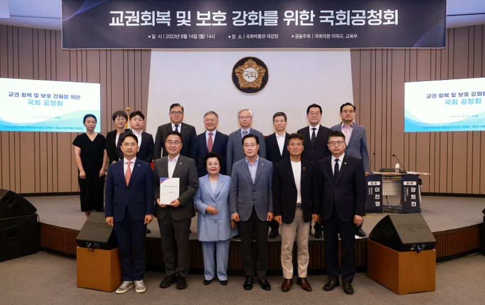 ±³À°ºÎ´Â 14ÀÏ ±¹È¸¹Ú¹°°ü ´ë°´ç¿¡¼ ÀÌÅÂ±Ô ÀÇ¿ø°ú ÇÔ²² ±³±Ç ȸº¹ ¹× º¸È£ °È¸¦ À§ÇÑ ±¹È¸ °øÃ»È¸¸¦ °³ÃÖÇß´Ù°í ¹àÇû´Ù.