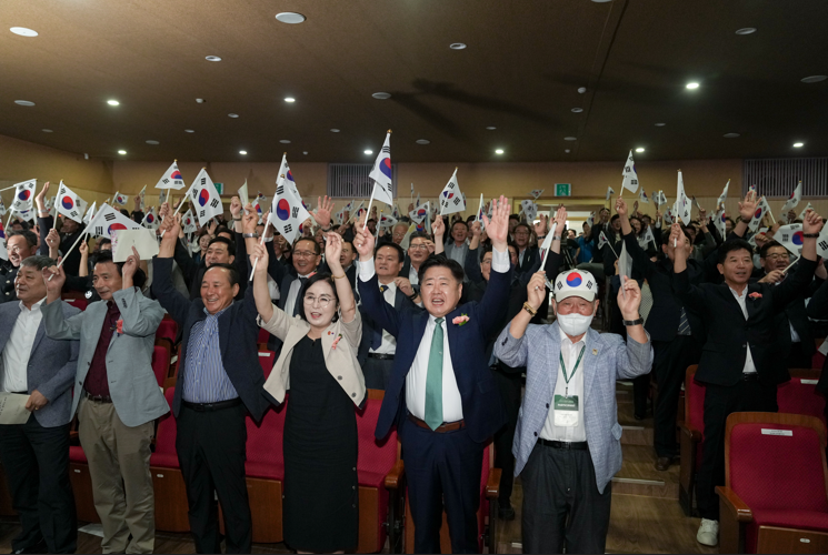 °æÃà½Ä¿¡ ¾Õ¼ ¿À¿µÈÆ Áö»ç´Â Á¶Ãµ¸¸¼¼µ¿»ê ¾Ö±¹¼±¿Ã߸ðžÀ» ã¾Æ Âü¹èÇßÀ¸¸ç, °æÃà½Ä ÀÌÈÄ¿¡´Â ±¤º¹È¸¿ø µî 250¿© ¸í°ú ¿ÀÂù °£´ãȸ¸¦ ÇÏ¸ç ¾Ö±¹¼±¿ÀÇ ¼þ°íÇÑ Èñ»ý¿¡ ´Ù½Ã ÇÑ ¹ø °¨»ç¿Í Á¸°æÀ» Ç¥ÇÏ°í µ¶¸³À¯°øÀÚ¿Í À¯°¡Á· ¿¹¿ì¿¡ Èû¾²°Ú´Ù°í °Á¶Çß´Ù.
