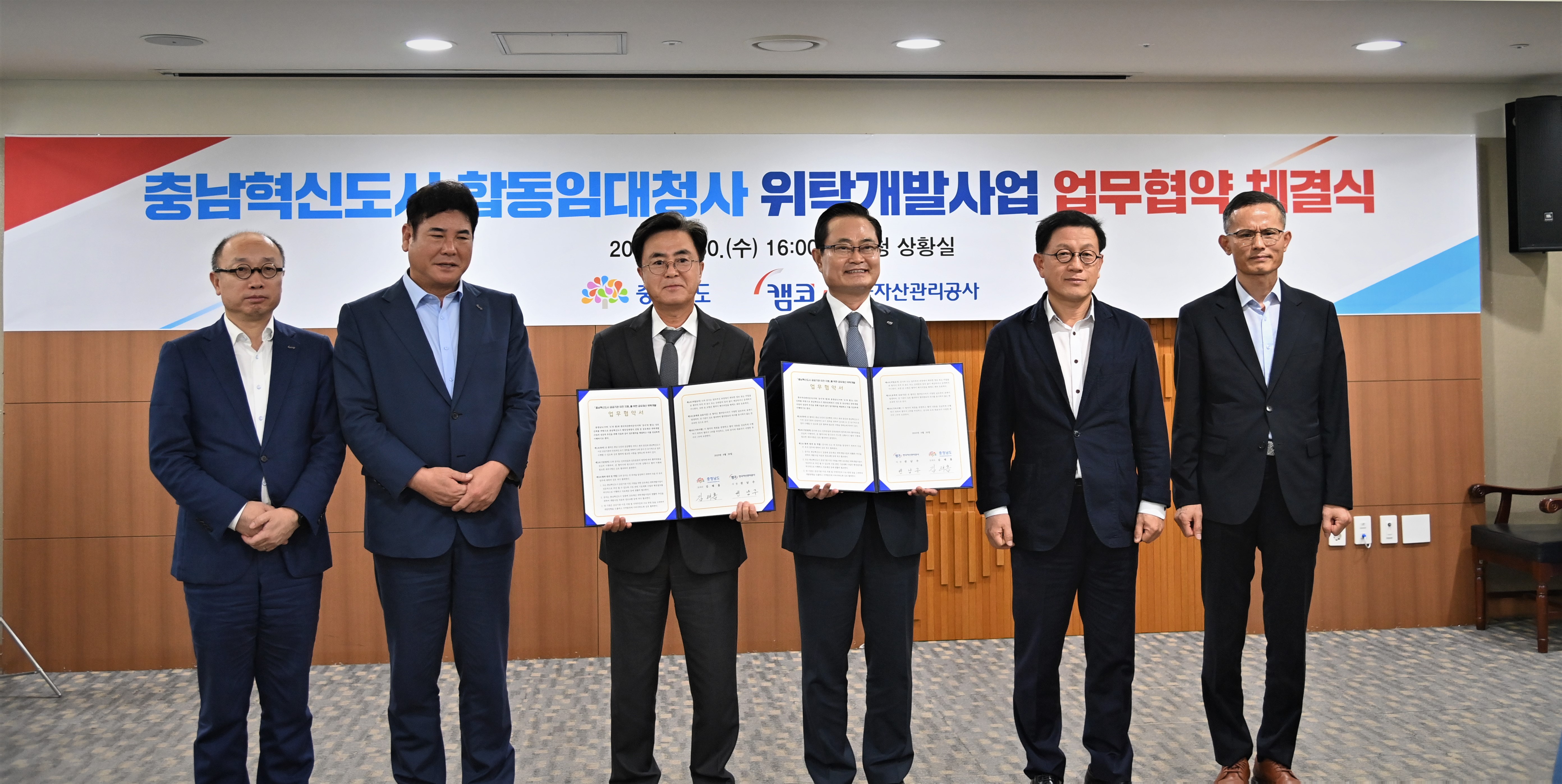 µµ´Â 30ÀÏ µµÃ» »óȲ½Ç¿¡¼ Çѱ¹ÀÚ»ê°ü¸®°ø»ç¿Í ¡®Ãæ³²Çõ½Åµµ½Ã °ø°ø±â°ü ÀÌÀü Áö¿øÀ» À§ÇÑ °øÀ¯Àç»ê À§Å¹ °³¹ß ¾÷¹«Çù¾à¡¯À» ü°áÇϰí ÇÕµ¿ ÀÓ´ë û»ç °Ç¸³ µîÀÇ ¼º°øÀû ÃßÁøÀ» À§ÇÑ Çù·ÂÀ» ´ÙÁüÇß´Ù.