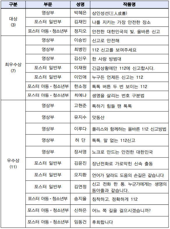 Á¦3ȸ ¿Ã¹Ù¸¥ 112½Å°í °ø¸ðÀü ¼ö»ó ¸í´Ü