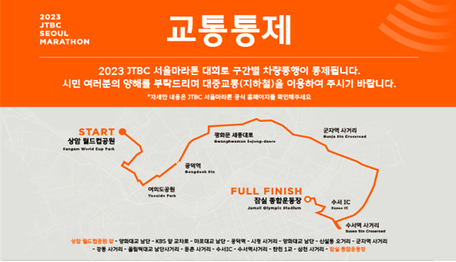 Àå¾ÖÀΰú ºñÀå¾ÖÀÎÀÌ ÇÔ²²ÇÏ´Â ¡®2023 JTBC ¼¿ï¸¶¶óÅæ¡¯ÀÌ¿À´Â 5ÀÏ(ÀÏ)¿ÀÀü 8½ÃºÎÅÍ ÁøÇàµÈ´Ù. ÀÌ¿¡ µû¶ó, ´ëȸ ±¸°£ÀÎ »ó¾Ï ¿ùµåÄŰø¿ø~¾çÈ´ë±³~¿©Àǵµ~¸¶Æ÷´ë±³~±¤È¹®~¼¼Á¾´ë·Î~õȣ´ë±³~Àá½ÇÁ¾ÇտÀå±îÁö ÁÖ¿ä µµ·Îº¯ÀÇ ±³ÅëÅëÁ¦´Â ¿ÀÀü 5½Ã30ºÐºÎÅÍ ¿ÀÈÄ 13½Ã30ºÐ±îÁö ±¸°£º° ÅëÁ¦¿Í ÇØÁ¦¸¦ ¹Ýº¹Çϸç ÁøÇàµÈ´Ù.