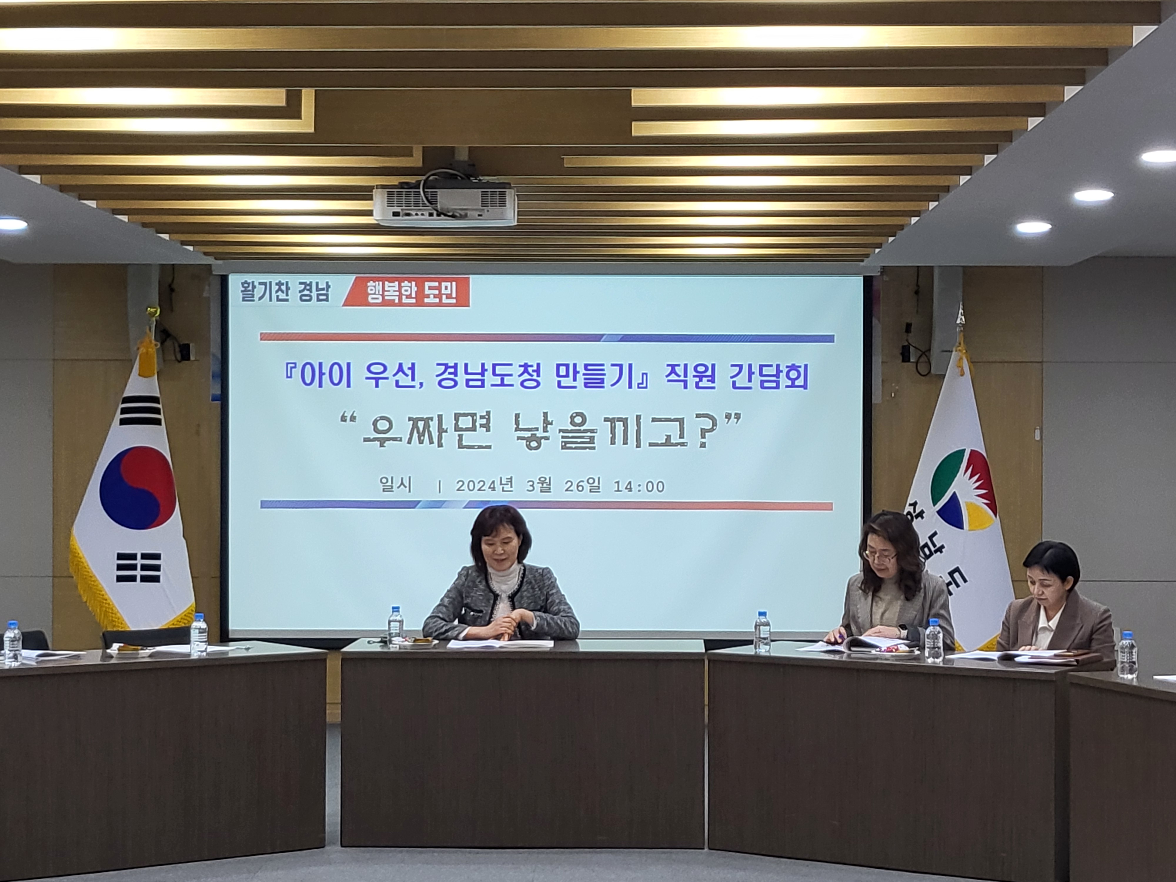 °æ»ó³²µµ(µµÁö»ç ¹Ú¿Ï¼ö)´Â 27ÀÏ ¿ÀÈÄ µµÃ» ȸÀǽǿ¡¼ 6¼¼ ¹Ì¸¸ Àڳฦ ¾çÀ°Çϰí ÀÖ´Â µµÃ» ¼Ò¼Ó Á÷¿øµé°ú ÇÔ²² ¡®¾ÆÀ̿켱, °æ³²µµÃ» ¸¸µé±â¡¯¸¦ À§ÇÑ °£´ãȸ¸¦ °³ÃÖÇß´Ù.