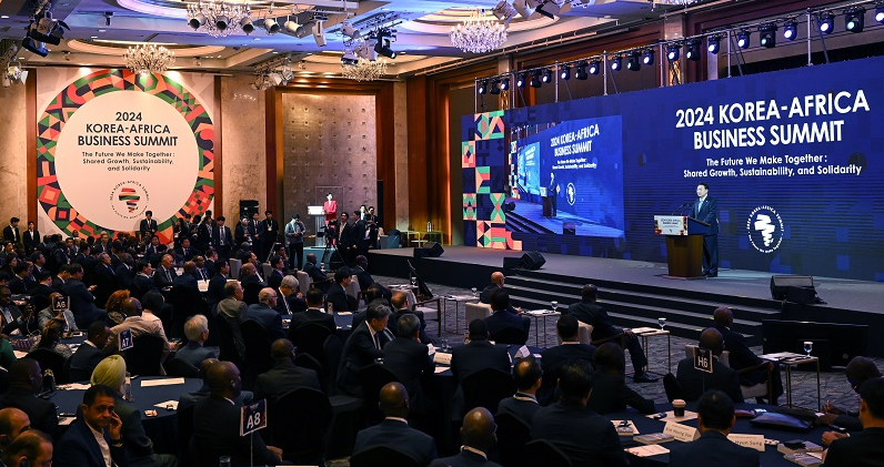 À±¼®¿ ´ëÅë·ÉÀÌ 5ÀÏ ¼¿ï Áß±¸ ·Ôµ¥È£ÅÚ¿¡¼ ¿¸° ¡®2024 ÇÑ-¾ÆÇÁ¸®Ä« ºñÁî´Ï½º ¼¹Ô °³È¸½Ä¡¯¿¡¼ ±âÁ¶¿¬¼³À» Çϰí ÀÖ´Ù. (»çÁø=´ëÅë·É½Ç)