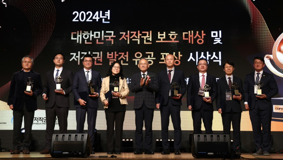 À¯ÀÎÃÌ ¹®ÈüÀ°°ü±¤ºÎ Àå°üÀÌ 27ÀÏ ¼¿ï ¿ë»ê±¸ ±¹¸³Áß¾Ó¹Ú¹°°ü ´ë°´ç¿¡¼ ¿¸° ¡®2024³â ´ëÇѹα¹ ÀúÀÛ±Ç º¸È£ ´ë»ó ¹× ÀúÀÛ±Ç ¹ßÀü À¯°ø Æ÷»ó ½Ã»ó½Ä¡¯¿¡¼ ´ëÇѹα¹ ÀúÀÛ±Ç º¸È£ ´ë»ó ¼ö»óÀÚ¿Í ±â³äÃÔ¿µÀ» Çϰí ÀÖ´Ù.(»çÁø=¹®Ã¼ºÎ Á¦°ø)