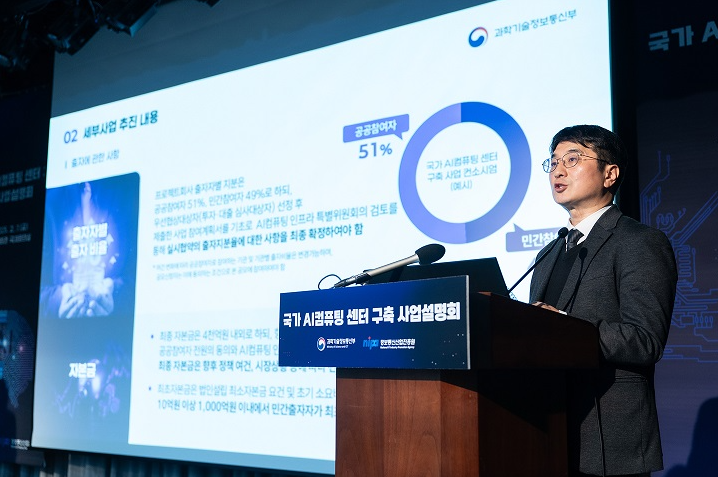 7ÀÏ ¼¿ï Áß±¸ ÀºÇàȸ°ü¿¡¼ ¿¸° '±¹°¡ AIÄÄÇ»ÆÃ ¼¾ÅÍ ±¸Ãà »ç¾÷¼³¸íȸ'¿¡¼ ÀÌÁÖ½Ä °ú±âºÎ Á¤º¸Åë½Å»ê¾÷Á¤Ã¥°úÀåÀÌ »ç¾÷ ³»¿ëÀ» ¹ßÇ¥Çϰí ÀÖ´Ù.(»çÁø=°ú±âÁ¤ÅëºÎ Á¦°ø)