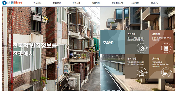 ºóÁý Á¤Ã¥¿¡ ´ëÇÑ ±¹¹ÎÀÇ ÀÌÇØµµ¸¦ ³ôÀ̱â À§ÇØ °ü·Ã ¹ýÀû ±Ù°Å, Á¤ºñ»ç¾÷, Á¤ºñ°èȹ µî ºóÁý Á¤Ã¥ Á¤º¸µµ Á¦°øÇÒ ¿¹Á¤ÀÌ´Ù.