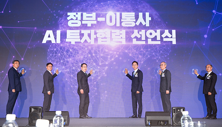 ¹è°æÈÆ °úÇбâ¼úÁ¤º¸Åë½ÅºÎ Àå°üÀÌ 12ÀÏ ¿ÀÈÄ ¼¿ï Áß±¸ ¿þ½ºÆ¾Á¶¼±È£ÅÚ¿¡¼ ¿¸° 'Á¤ºÎ-ÀÌÅë»ç AI ÅõÀÚÇù·Â ¼±¾ð½Ä' ¿¡¼ ±â³äÃÔ¿µÀ» Çϰí ÀÖ´Ù. ¿ÞÂʺÎÅÍ À¯Áö»ó KIFÅõÀÚÁ¶ÇÕ ÅõÀڿÀ§¿øÀå, ÀÌÃ¶ÈÆ LGÀ¯Ç÷¯½º ºÎ»çÀå, À¯¿µ»ó SKÅÚ·¹ÄÞ ´ëÇ¥, ¹è°æÈÆ Àå°ü, ±è¿µ¼· KT ´ëÇ¥, ¼ÛÀ缺 Çѱ¹Åë½Å»ç¾÷ÀÚ¿¬ÇÕȸ »ó±ÙºÎȸÀå.(»çÁø=°ú±âÁ¤ÅëºÎ Á¦°ø)