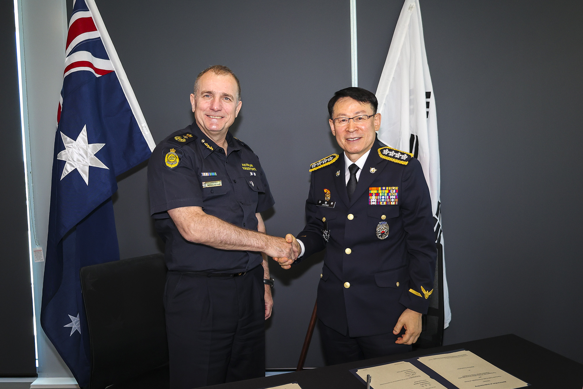 ÇØ¾ç°æÂûû(ûÀå Á¤ºÀÈÆ)Àº 24ÀÏ È£ÁÖ Äµ¹ö¶ó¿¡¼ ³²ÅÂÆò¾ç ÇØ¿ªÀ» Ç×ÇØ ÇÏ´Â ¿ì¸®³ª¶ó ¼±¹Ú°ú ¼±¿øÀÇ ¾ÈÀüÈ®º¸¿Í ¸¶¾à¹Ð¼ö µî ±¹Á¦¼º ¹üÁË¿¡ ´ëÀÀÇϱâ À§ÇØ È£ÁÖ ±¹°æº¸È£ºÎ(ABF)¿Í ÇØ¾ç¾Èº¸ Çù·Â ¾çÇØ°¢¼(MOU)¸¦ ü°áÇß´Ù°í ¹àÇû´Ù.