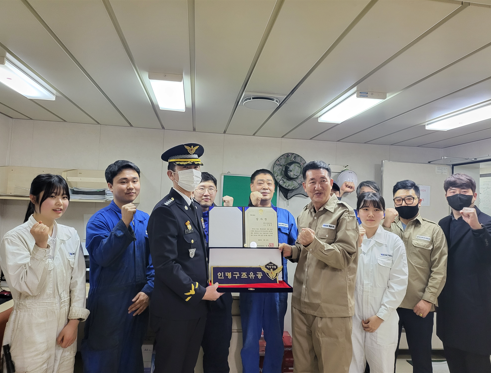 ÇØ¾ç°æÂûû(ûÀå ±èÁ¾¿í)Àº Àü³² ½Å¾È±º ´ëºñÄ¡µµ ¼¹æ 9ÇØ¸® ÇØ»ó¿¡¼ ¾î¼± Àüº¹»ç°í ÇöÀåÀÇ »ýÁ¸ÀÚ 3¸íÀ» ±¸Á¶ÇÑ ±¤¾çÇÁ·ÐƼ¾îÈ£(9,751Åæ±Þ, ÀϹÝȹ°¼±, ½Â¼±¿ø 14¸í)ÀÇ ÀÌÇü±Ù ¼±Àå¿¡°Ô °í¸¶¿òÀÇ Ç¥½Ã·Î ÇØ¾ç°æÂûûÀå °¨»çÀåÀ» Àü´ÞÇÏ¿´´Ù°í ¹àÇû´Ù.