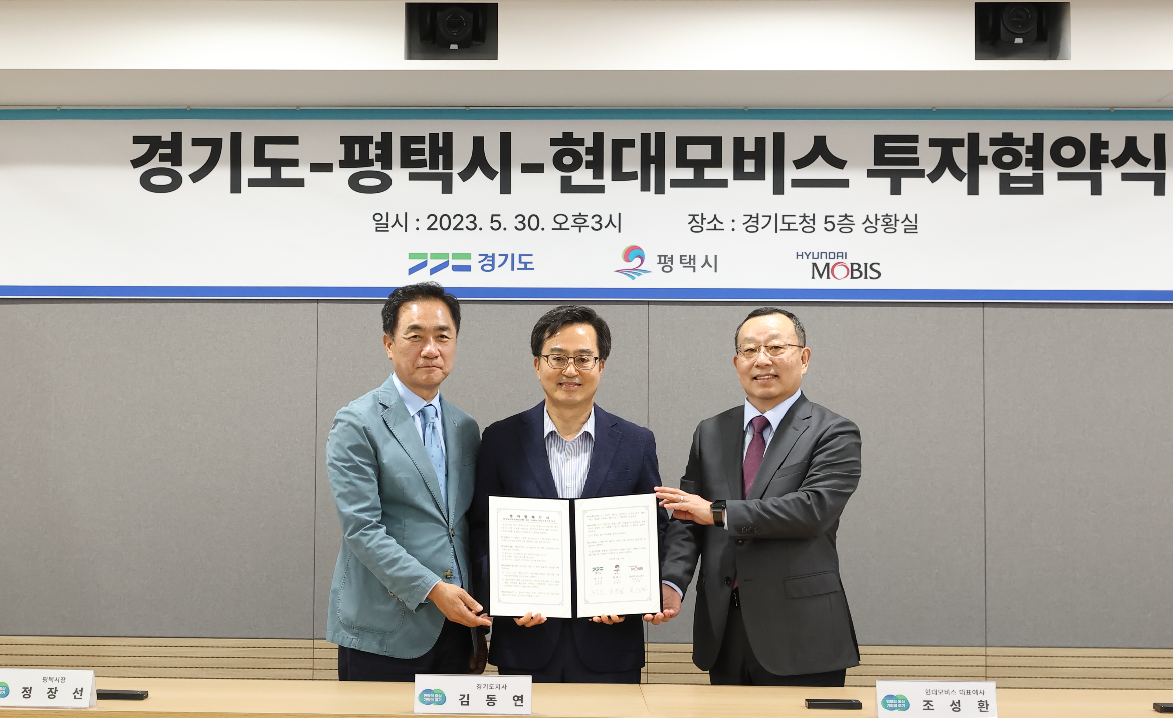 30ÀÏ ¿ÀÈÄ °æ±âµµÃ» »óȲ½Ç¿¡¼ ±èµ¿¿¬ °æ±âµµÁö»ç, Á¤Àå¼± ÆòÅýÃÀå, Á¶¼ºÈ¯ Çö´ë¸ðºñ½º ´ëÇ¥À̻簡 Âü¼®ÇÑ °¡¿îµ¥ Çö´ë¸ðºñ½º ÅõÀÚ Çù¾à½ÄÀÌ ¿·È´Ù.