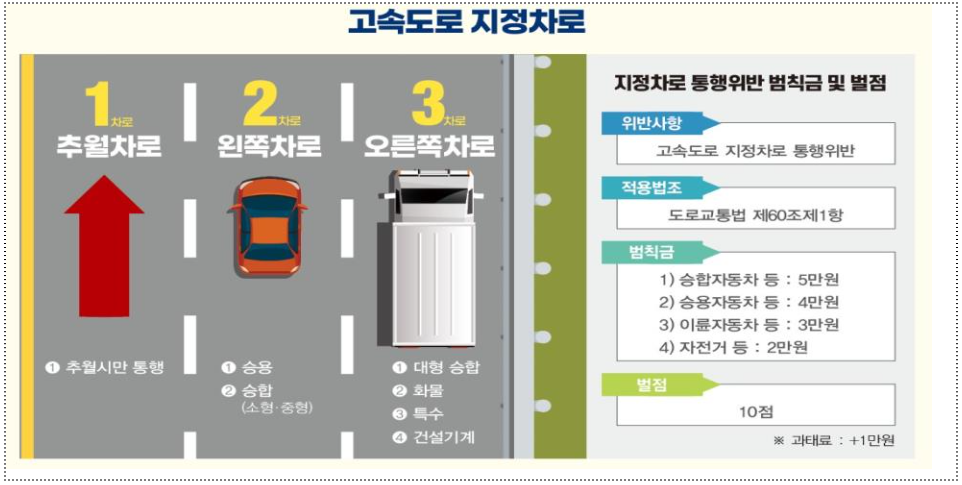 °í¼Óµµ·Î¸¦ ¿îÇàÇÏ´Â Â÷·®Àº Â÷Á¾¿¡ µû¶ó ¼ÒÇüÂ÷´Â ¿ÞÂÊ Â÷·Î, ´ëÇüÂ÷´Â ¿À¸¥ÂÊ Â÷·Î·Î ÁÖÇàÇØ¾ß Çϰí 1Â÷·Î´Â Ãß¿ùÇÒ ¶§¸¸ ÀÌ¿ëÇØ¾ß Çϳª, °í¼Óµµ·Î 1Â÷·Î Á¤¼ÓÁÖÇà°ú °°Àº À§¹Ý ÇàÀ§°¡ ºó¹øÇÏ°Ô ¹ß»ýÇÏ´Â µî ¾ÆÁ÷µµ ÁöÁ¤Â÷·Î Á¦µµ¿¡ ´ëÇÑ ÀνÄÀº ºÎÁ·ÇÑ ½ÇÁ¤ÀÌ´Ù.