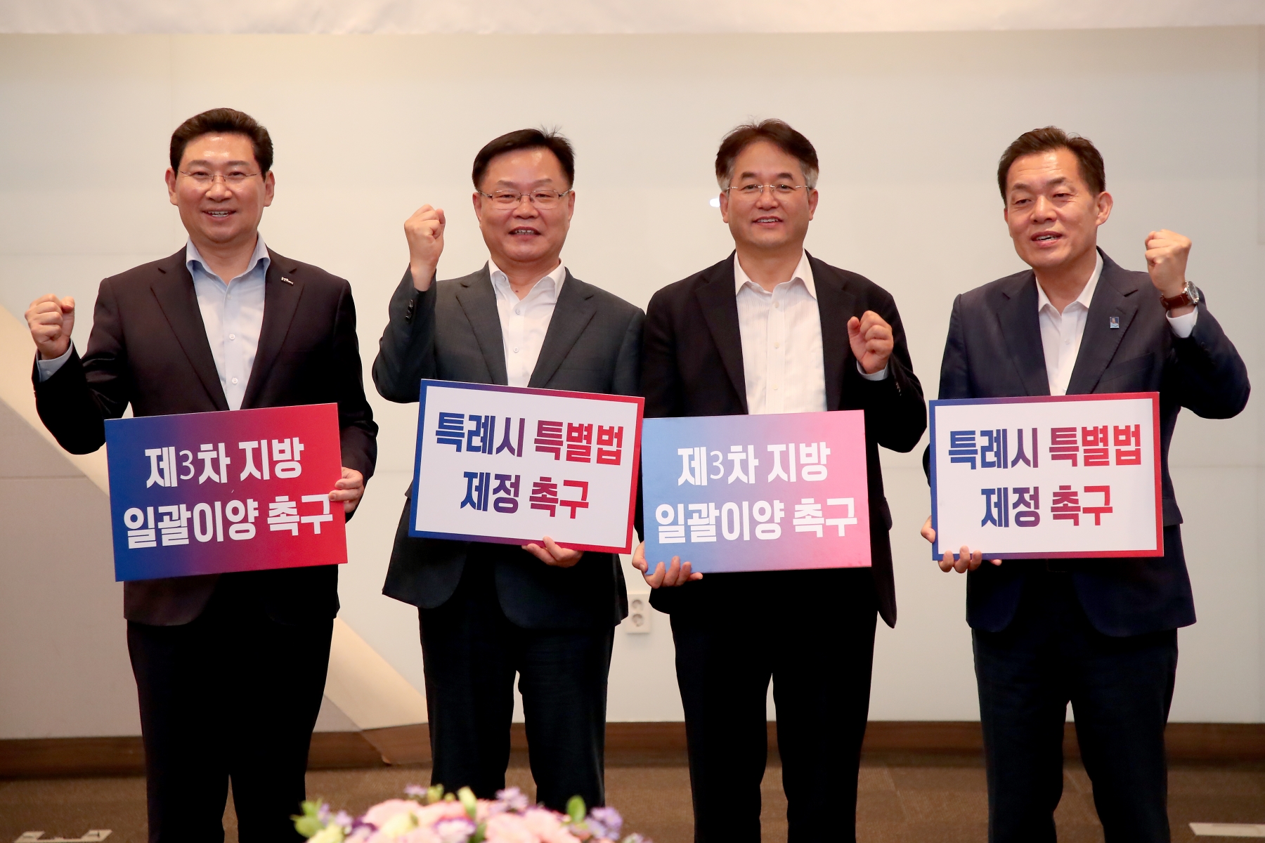 ´ëÇѹα¹Æ¯·Ê½Ã½ÃÀåÇùÀÇȸ´Â ÀÚÄ¡ºÐ±Ç È®¸³°ú ´ëÇѹα¹ Áö¹æ½Ã´ë ±¸ÇöÀ» À§ÇÏ¿© Àα¸ 100¸¸ 4°³ Ư·Ê½Ã(°í¾ç․¼ö¿ø․¿ëÀÎ․â¿ø)ÀÇ ½ÃÀåÀÌ ¸ð¿© ¼³¸³ÇÑ ´Üü·Î, ¸Å³â Á¤±âÀûÀ¸·Î ȸÀǸ¦ ¿¾î Ư·Ê½Ã ±ÇÇÑ È®º¸¸¦ À§ÇÑ ¾È°ÇÀ» ¼±Á¤ÇØ ÃßÁøÇϰí ÀÖ´Ù.