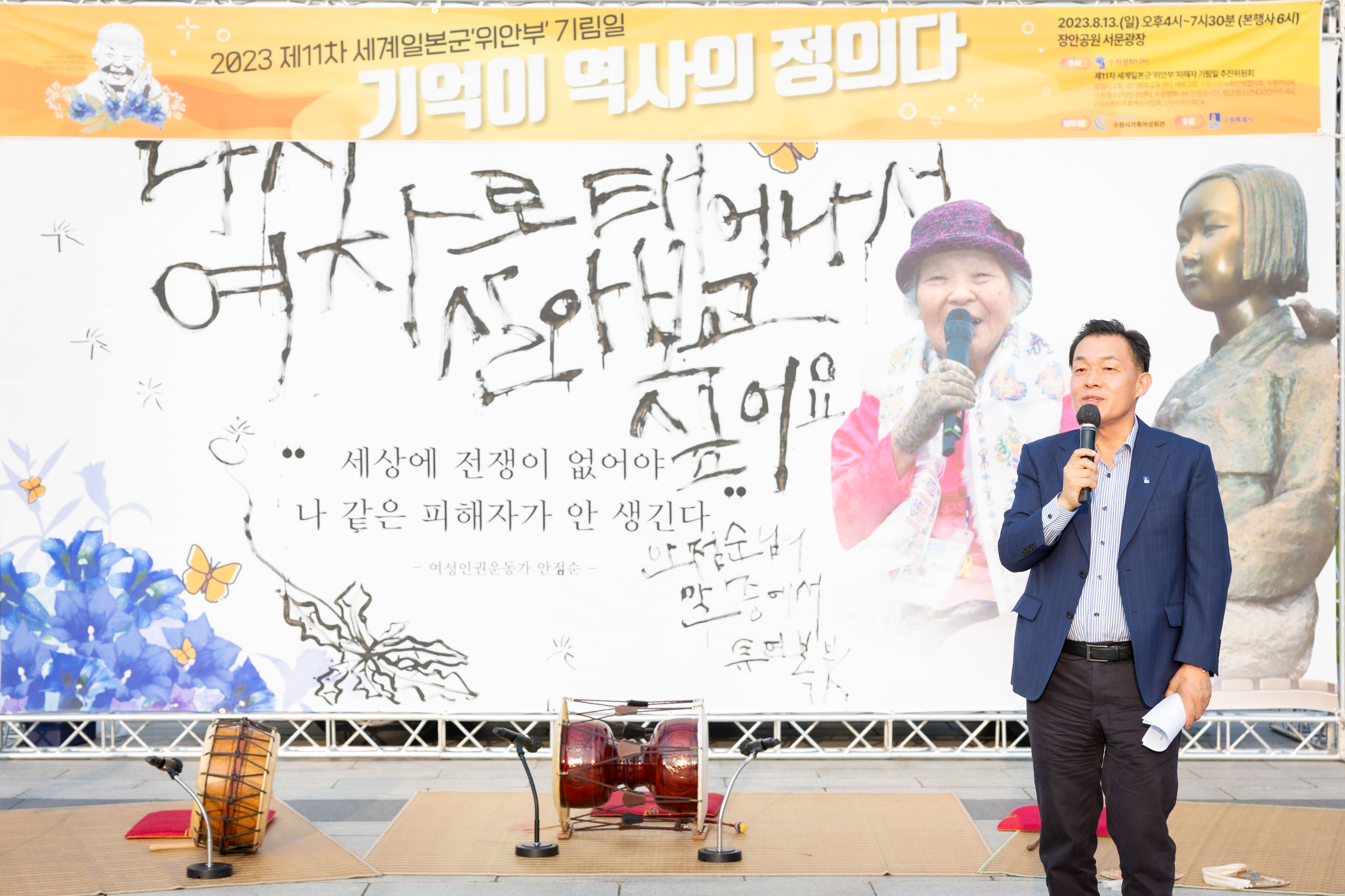 ¹¬³äÀ¸·Î ½ÃÀÛµÈ À̳¯ ±â³ä½ÄÀº ÀϺ»±º ¼º³ë¿¹ ÇÇÇØÀÚµéÀÇ ¸í¿¹¡¤ÀÎ±Ç È¸º¹À» À§ÇØ È°µ¿ÇÏ´Â ¡®¼ö¿øÆòȳªºñ¡¯ÀÇ ÀÌÁÖÇö »óÀÓ´ëÇ¥ Àλ縻, ÀÌÀçÁØ ¼ö¿øÆ¯·Ê½ÃÀå°ú ±è±âÁ¤ ¼ö¿øÆ¯·Ê½ÃÀÇȸ ÀÇÀåÀÇ Ãß³ä»ç, ½Ã¹Î ¹®È°ø¿¬, Á¦11Â÷ ÀϺ»±º ¡®À§¾ÈºÎ¡¯ ÇÇÇØÀÚ ±â¸²ÀÏ ¼±¾ð¹® ³¶µ¶ µîÀ¸·Î À̾îÁ³´Ù.