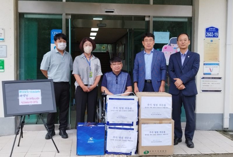 °æ³²µµ¸³³²ÇØ´ëÇÐ(ÃÑÀåÁ÷¹«´ë¸® ±Ç´ë°ï)ÀÌ Ãß¼®À» ¾ÕµÎ°í Áö¿ª »çȸº¹Áö½Ã¼³°ú µ¶¸³À¯°øÀÚ À¯Á·À» ¹æ¹®ÇÏ¿© ±âºÎ±Ý°ú ¼±¹°À» Àü´ÞÇß´Ù.