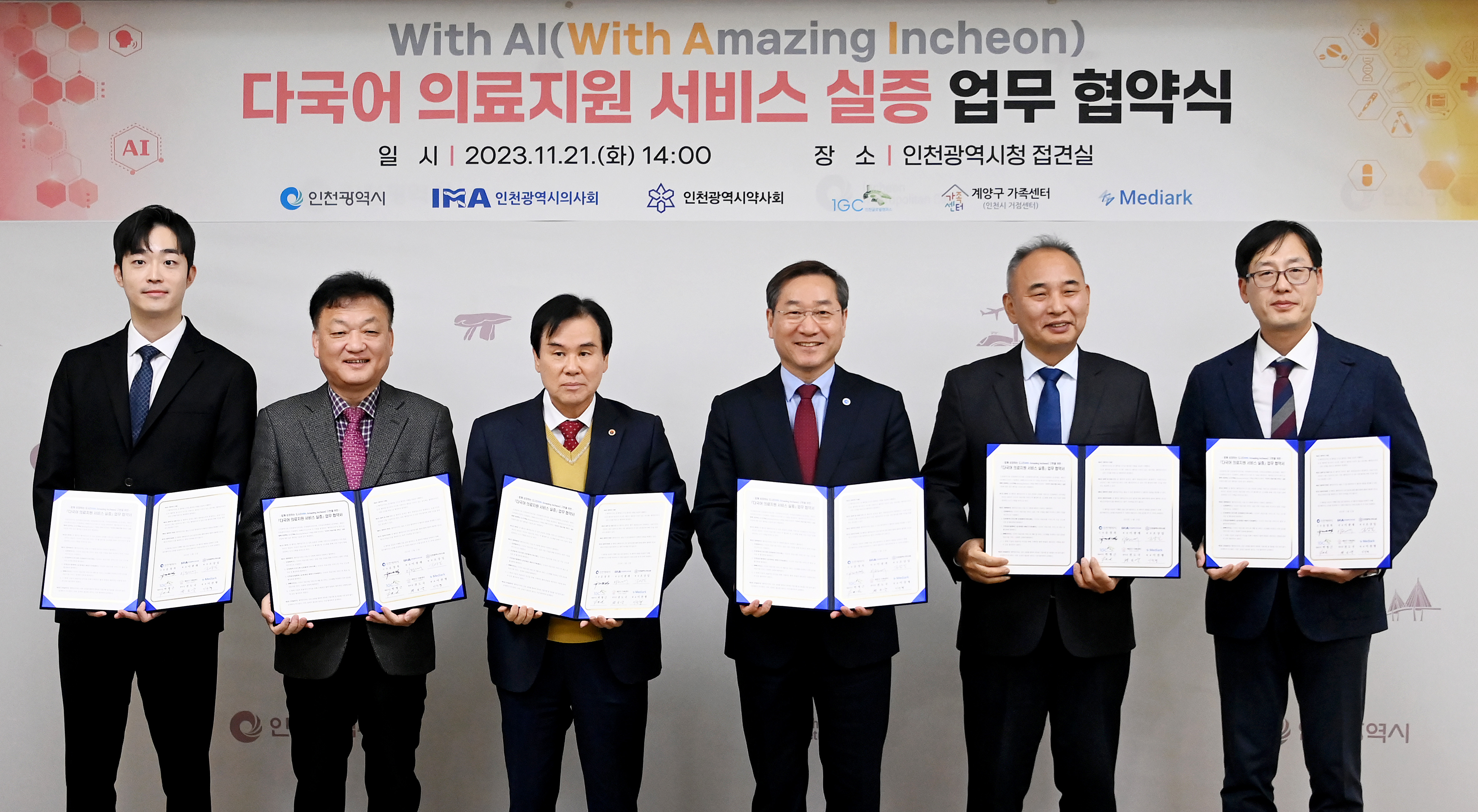 ÀÎõ±¤¿ª½Ã´Â 11¿ù 21ÀÏ ½Ãû Á¢°ß½Ç¿¡¼ ¡®With AI(With Amazing Incheon) ´Ù±¹¾î ÀÇ·áÁö¿ø ¼ºñ½º ½ÇÁõ¡¯ÀÇ ¼º°øÀûÀÎ ÃßÁøÀ» À§ÇÑ Çù¾àÀ» ü°áÇß´Ù°í ¹àÇû´Ù.