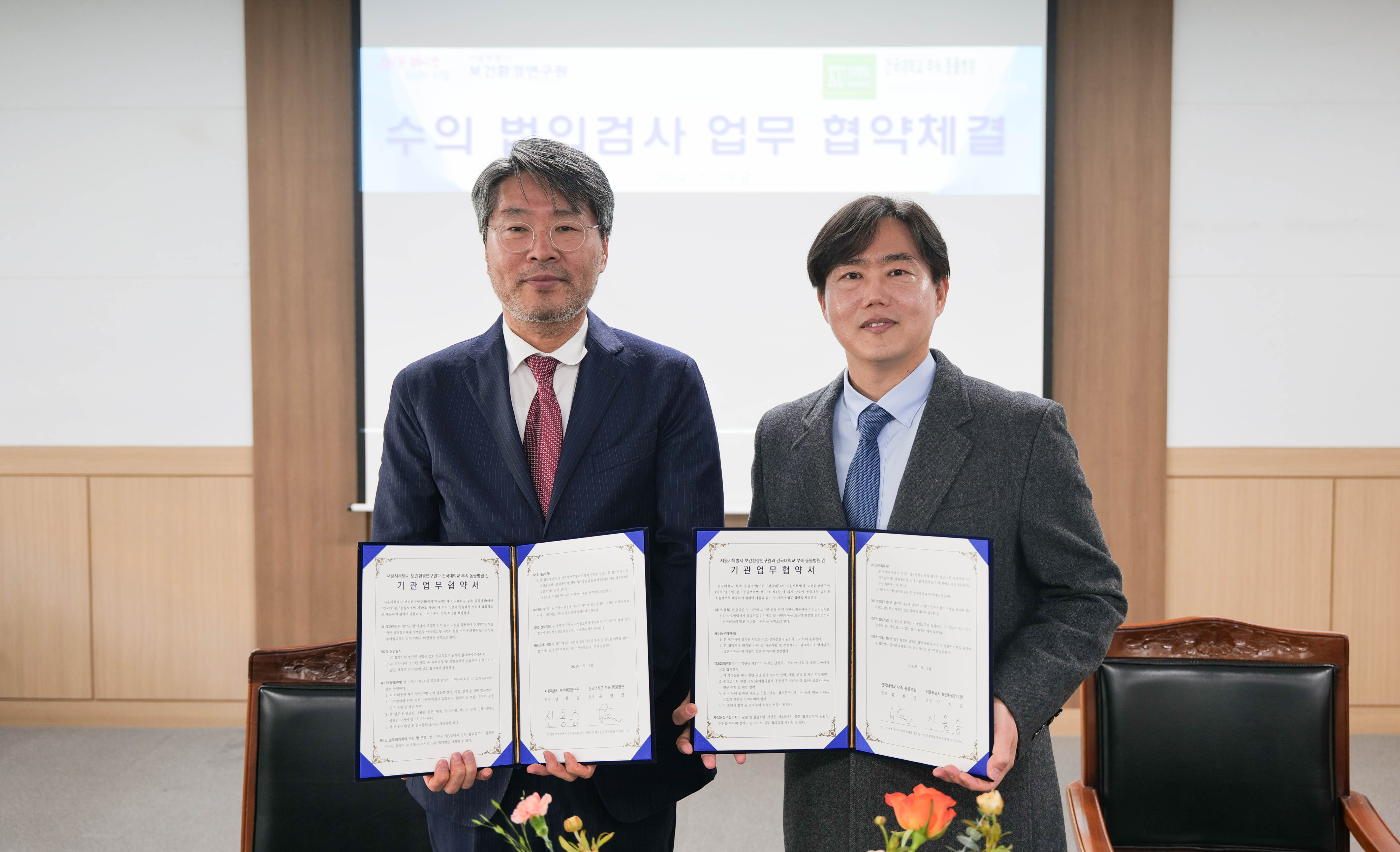 °Ç±¹´ëÇб³ µ¿¹°º´¿ø(¿øÀå À±Ç念)ÀÌ ¼¿ï½Ãº¸°Çȯ°æ¿¬±¸¿ø(¿øÀå ½Å¿ë½Â)°ú 1¿ù 19ÀÏ ÇÇÇÐ´ë µ¿¹°ÀÇ Æó»ç ¿øÀÎ ±Ô¸íÀ» À§ÇÑ ¡®¼öÀÇ ¹ýÀÇ °Ë»ç ¾÷¹«(¿µ»óÁø´Ü ºÐ¾ß) °øµ¿ Çù¾à¡¯À» ü°áÇß´Ù.