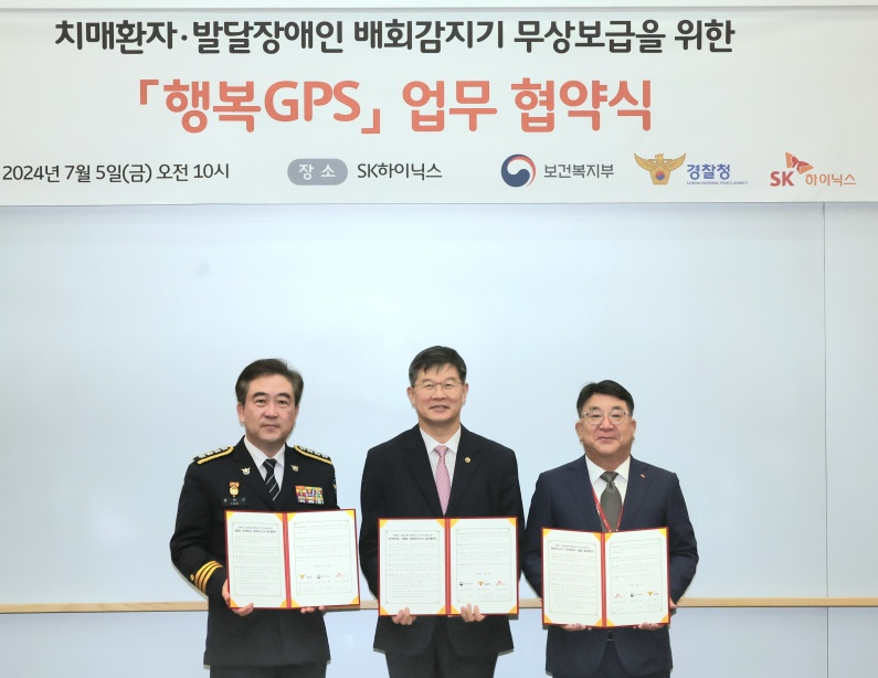 5ÀÏ ¿ÀÀü °æ±â ÀÌõ½Ã SKÇÏÀ̴нº º»»ç¿¡¼ ¿¸° ¡®Ä¡¸ÅȯÀÚ¡¤¹ß´ÞÀå¾ÖÀÎ ¹èȸ°¨Áö±â ¹«»óº¸±ÞÀ» À§ÇÑ ÇູGPS ¾÷¹«Çù¾à½Ä¡¯¿¡¼ (¿ÞÂʺÎÅÍ) À±Èñ±Ù °æÂûûÀå, À̱âÀÏ º¸°Çº¹ÁöºÎ Á¦1Â÷°ü, ±èµ¿¼· SKÇÏÀ̴нº ´ë¿ÜÇù·ÂÃѰý»çÀåÀÌ ±â³äÃÔ¿µÀ» Çϰí ÀÖ´Ù.(Á¦°ø=º¸°Çº¹ÁöºÎ)