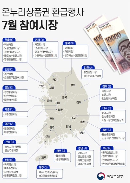 ¸ÕÀú ÁÖ¿ä °ü±¤Áö ¼ö»ê½ÃÀå°ú ÀüÅë½ÃÀå µî¿¡¼ ±¹»ê ¼ö»ê¹°À» ±¸¸ÅÇÑ ¼ÒºñÀڵ鿡°Ô ±¸¸Å±Ý¾×¿¡ µû¶ó ÃÖ´ë 2¸¸ ¿ø±îÁö ¿Â´©¸®»óǰ±ÇÀ» Áö±ÞÇÏ´Â ¡®7¿ù ¿Â´©¸®»óǰ±Ç ȯ±ÞÇà»ç¡¯¸¦ °³ÃÖÇÑ´Ù.