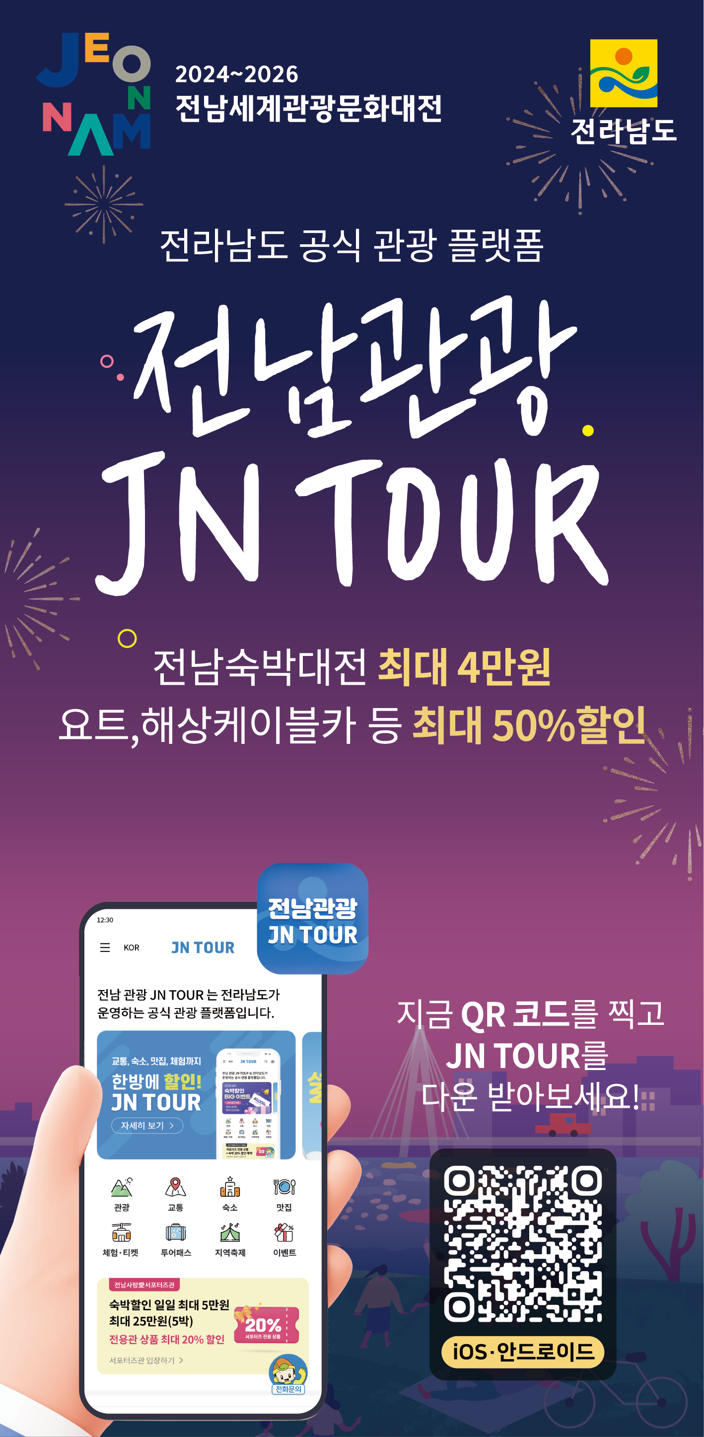 Àü³² ¿©ÇàÀ» °¡¼ººñ ÀÖ°Ô Áñ±âµµ·Ï °áÁ¦±Ý¾×¿¡ µû¶ó ¼÷¹ÚÇÒÀÎ ÄíÆùÀ» Á¦°øÇÏ´Â ¡®³²µµ ¼÷¹ÚÇÒÀÎ ºò À̺¥Æ®¡¯µµ ÃßÁøÇÑ´Ù. Áö¿ø ´ë»óÀº Àü³² ¿Ü ÁÖ¼ÒÁö¸¦ µÐ °ü±¤°´À¸·Î, µµ³» ¼÷¹Ú¾÷¼Ò ÀÌ¿ë ½Ã °áÁ¦±Ý¾× 10¸¸ ¿ø ÀÌ»óÀº 4¸¸ ¿ø, 7¸¸ ¿ø ÀÌ»óÀº 3¸¸ ¿ø, 7¸¸ ¿ø ¹Ì¸¸Àº 2¸¸ ¿ø ÇÒÀÎ ÄíÆùÀ» Á¦°øÇÑ´Ù. ¡®Àü³² »ç¶û¾Ö(äñ) ¼Æ÷ÅÍÁ ÀÎÁõ ½Ã 1¸¸ ¿ø Ãß°¡ ÇÒÀÎÀ» Á¦°øÇÑ´Ù. ¼÷¹Ú¾÷¼Ò ¿¹¾à¡¤°áÁ¦´Â Àü³²°ü±¤Ç÷§Æû(JN TOUR) ¾Û¿¡¼ °¡´ÉÇÏ´Ù.