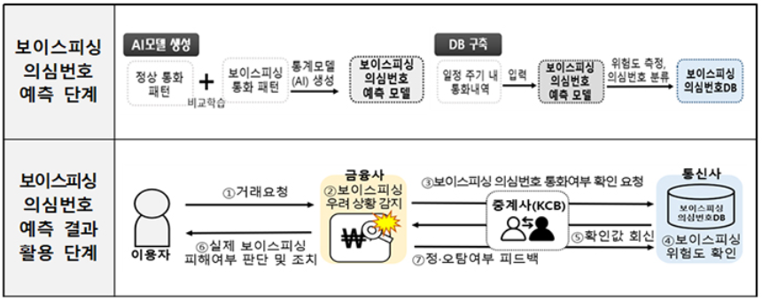 Åë½Å»ç´Â º¸À̽ºÇÇ½Ì ÆÐÅÏÀ» ÇнÀÇÑ ÀΰøÁö´É(AI) ¸ðÇüÀ» °³¹ßÇØ º¸À̽ºÇÇ½Ì ÀǽɹøÈ£ µ¥ÀÌÅͺ£À̽º(DB)¸¦ ±¸ÃàÇϰí, ±ÝÀ¶»ç´Â º¸À̽ºÇÇ½Ì ÇÇÇØ ÀÇ½É »óȲÀÌ ¹ß»ýÇϸé Åë½Å»ç¿¡ Á¶È¸ÇØ ½ÇÁ¦ º¸À̽ºÇǽÌÀ¸·Î ÆÇ´ÜµÇ¸é °Å·¡ Â÷´Ü µîÀÇ Á¶Ä¡¸¦ ÇÑ´Ù.