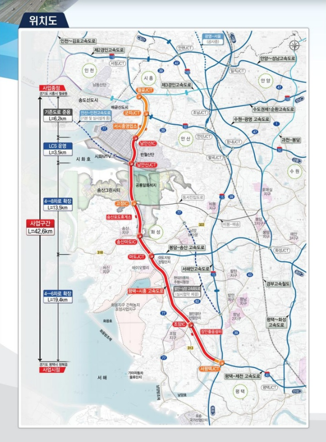 ÀÌ »ç¾÷Àº ÇöÀç ¿î¿µ ÁßÀÎ ÆòÅÃ-½ÃÈï °í¼Óµµ·Î ÃÑ¿¬Àå 42.6§°(¼ÆòÅÃJCT~¿ù°ùJCT) Áß 36.4§° ±¸°£(¼ÆòÅÃJCT~³²¾È»êIC)À» ±âÁ¸ ¿Õº¹ 4Â÷·Î¿¡¼ ¿Õº¹ 6~8Â÷·Î·Î È®ÀåÇÏ´Â »ç¾÷ÀÌ´Ù.