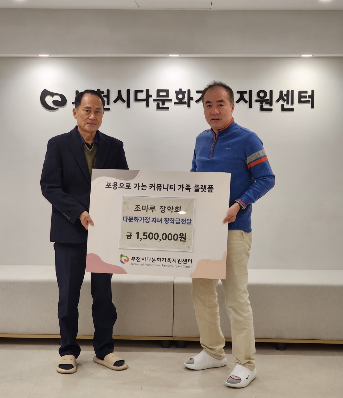 ºÎõ½Ã´Ù¹®È°¡Á·Áö¿ø¼¾ÅÍ(¼¾ÅÍÀå ¿À¿íÁ¦)´Â Á¶¸¶·çÀåÇÐȸ(´ëÇ¥ ÇÑÂù¿ì, Ãѹ« ¼ÛöÀç)¿Í ÇÔ²² ´Ù¹®È°¡Á¤ Àڳฦ À§ÇÑ ÀåÇÐ±Ý Àü´Þ½ÄÀ» ÁøÇàÇß´Ù°í ¹àÇû´Ù.